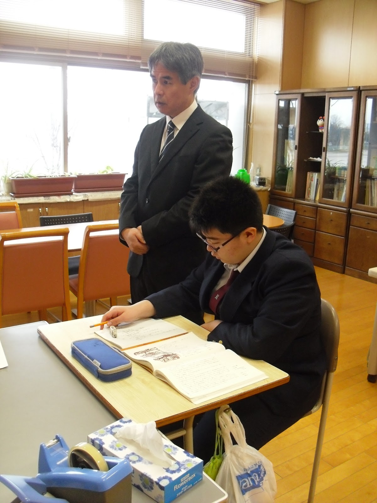 生徒のいない理科室からカリカリとチョークで書く音が聞えてきました。井上博幸先生が次の授業の板書の準備をしているのでした。準備あってこその良い授業です。